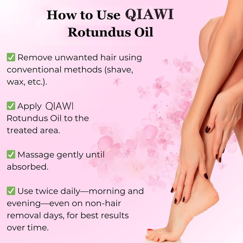 Harness the power of QIAWI Rotundus Oil, the main ingredient known for its natural ability to slow hair regrowth. This potent oil, combined with jojoba oil, rosehip oil, sweet almond oil, and tea tree oil, helping you achieve smoother skin with fewer irritations.